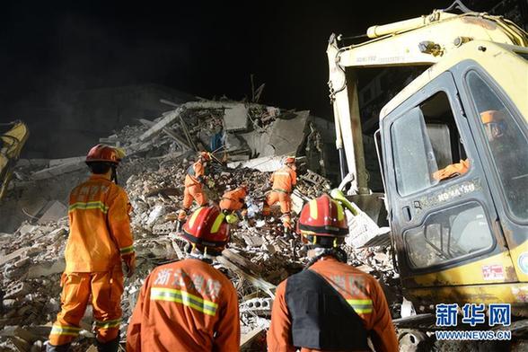 这是10月11日凌晨拍摄的温州民房倒塌现场。记者10月11日凌晨从温州市鹿城区相关部门获悉,鹿城区双屿街道民房倒塌现场救援工作已基本结束,目前事故共造成22死6伤。新华社发