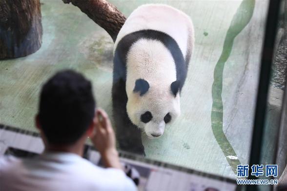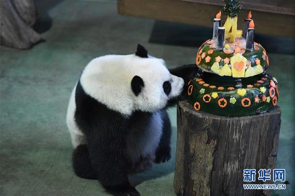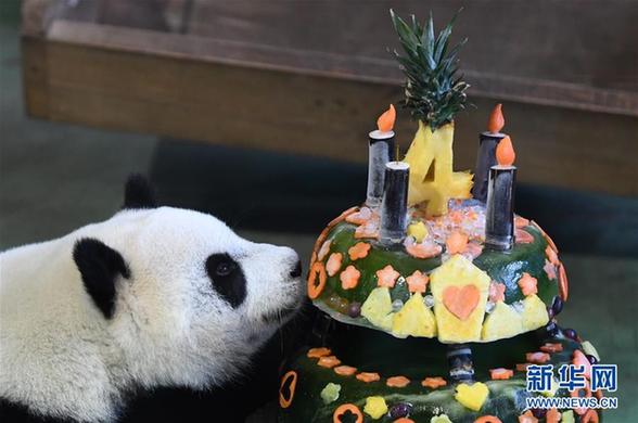 7月6日,“圆仔”准备品尝生日蛋糕。当日,台北动物园的大熊猫“圆仔”迎来4岁生日,动物园为“圆仔”特意准备了生日蛋糕。可爱的“圆仔”吸引游客前来参观。 新华社记者 周密 摄