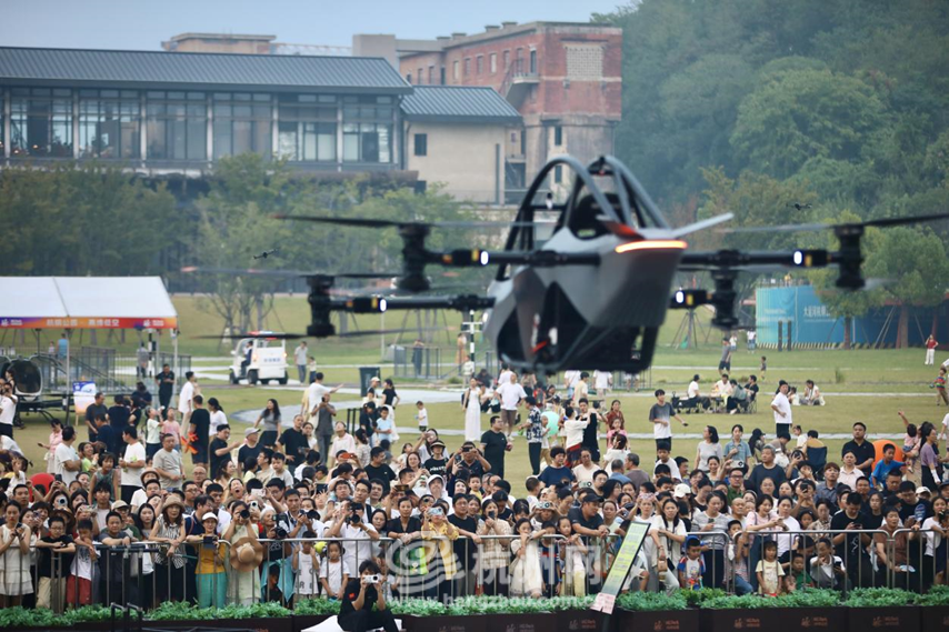 10月7日,杭州大运河杭钢公园内人潮涌动,多款立式载人飞行器、双座多旋翼航空器等“黑科技”产品集中亮相,通过动态飞行、静态展示与互动体验,让市民游客沉浸式感受“低空经济”的无限可能。