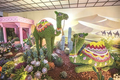 观众李金一是浙江大学大二的留学生,来自伊朗。这组作品给她留下了非常深刻的印象,“太漂亮了,骆驼的还原度很高,关键它们还是用花做成的”。
