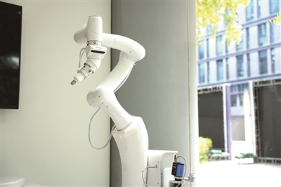 “我们使用了力控精度分辨率高达0.1N·m(牛米)的力控传感器,能感知人体细微的动作。比如,你想起身顶一下,机器人就会自动离开身体。”余志勇介绍,机器人的每个关节都设计了防下坠抱闸,即使突然断电,机械臂下压的距离也不会超过1厘米,不会对人体造成伤害。