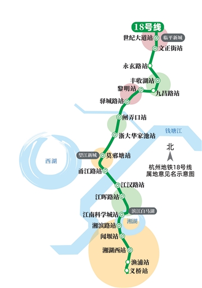 杭州地铁18号线一期工程的新建车站站名拟命名方案,在征集相关属地单位意见后,现在正在进行公示。
