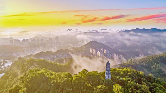 云岚雾霭染秋树