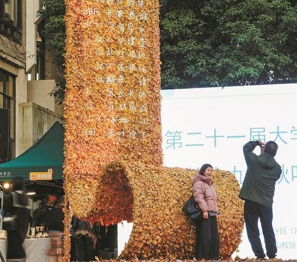 巨型落叶台灯被点亮 南山路上一年一度的浪漫回归