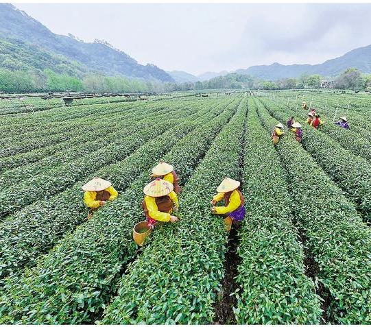 近日,西湖景区的龙井茶园里,西湖龙井43号进入采摘旺季,大批采茶工抓紧采摘明前西湖龙井茶。