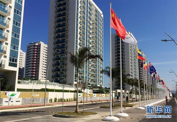 7月24日,奥运村中飘扬的中国国旗。当日,里约奥运会奥运村开村仪式在巴西里约热内卢举行。目前,中国代表团团部和部分选手已经入住奥运村。新华社记者姬烨摄