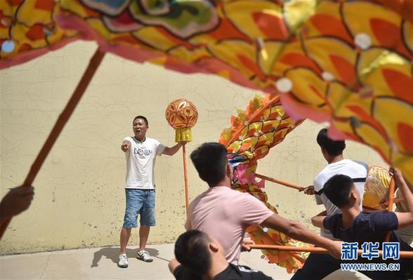 6月16日,李廷刚在指导年轻队员练习舞龙。新华社发(龙雷摄)