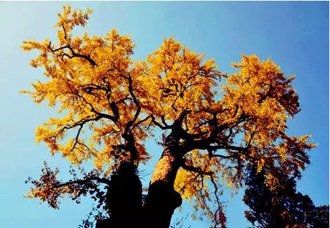 要拍出银杏叶透亮的黄色树叶,需要两个条件,一个是有光线,另一个是选择逆光。拍逆光同样要考虑背景的色彩,一般深色的背景会使逆光的效果更好。如果有蓝天,用蓝天做背景,冷暖反差的对比会更美。跟光影玩魔术,拍出变化