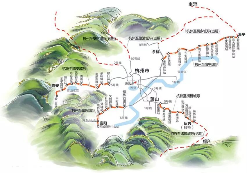 前杭州在建线路为二期工程的5号线、6号线,城际铁路杭临线、杭富线,以及地铁三期各条线路,在建里程331公里。