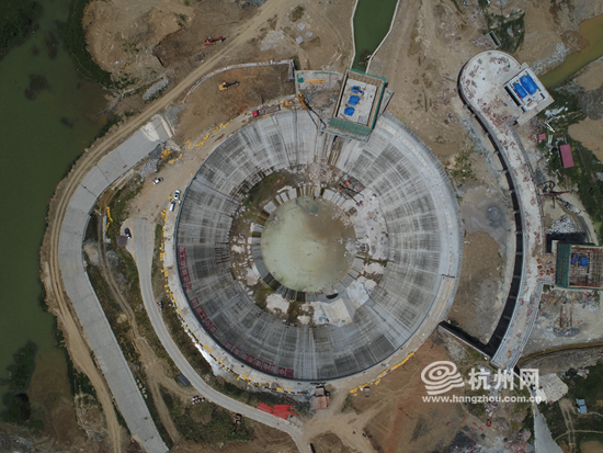 2019年8月6日,位于杭州闲林水库旁的“超级碗”——千岛湖配水工程闲林取水口配水井工程已经接近尾声。