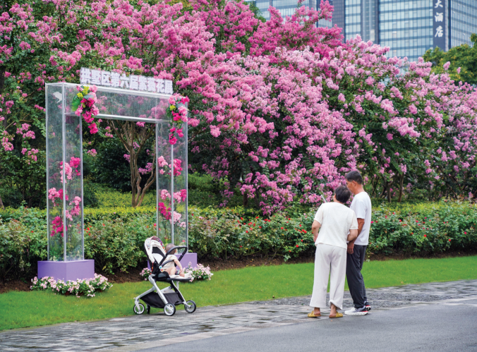 昨天,拱墅区第六届紫薇花展在杭州城北体育公园启幕。园内20余个品种的1300多株各色紫薇迎来二度盛花期,织就一幅锦绣芳华的秋色画卷。据了解,近年来,城北体育公园内的紫薇经过花期调控,已实现从7月至8月、从9月至10月的两度开放。花展将持续至10月7日。