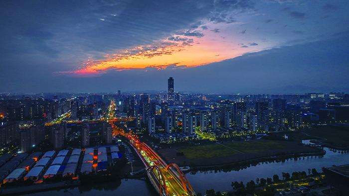 市气象台消息,昨天开始杭州开启回暖模式,在31日之前有3~4摄氏度的气温小幅回升,体感上总体来说比较适宜。这是昨天在拱墅区顾扬路上空拍摄的杭城晚霞。