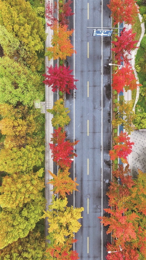 秋意渐浓,杭州钱塘区的学林街(文泽路-文溯路)迎来了迷人的枫叶季。道路两侧的枫叶逐渐转红,整条街犹如被打翻的调色盘,红黄相间,“枫”景如画。