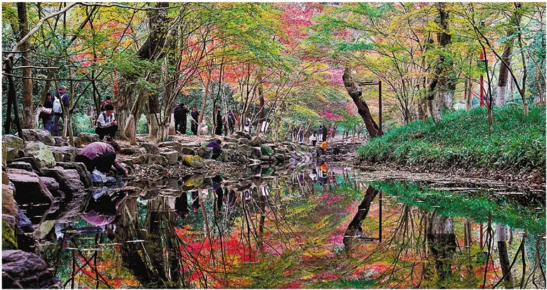 这几天,九溪烟树景区的红枫已至最佳观赏期,色彩斑斓的枫叶在潺潺溪水中倒映成趣,勾勒出一幅幅移步易景的灵动画面,吸引大批市民游客慕名前来打卡。