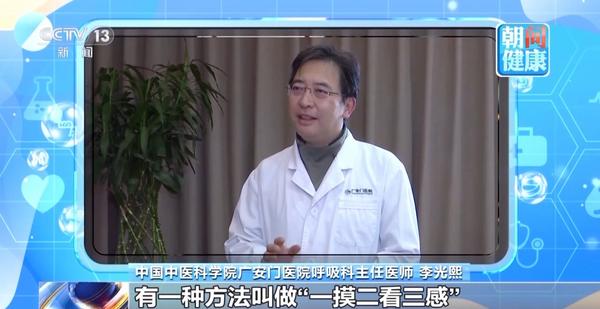 中国中医科学院广安门医院呼吸科主任医师 李光熙:有一种方法叫“一摸二看三感”。