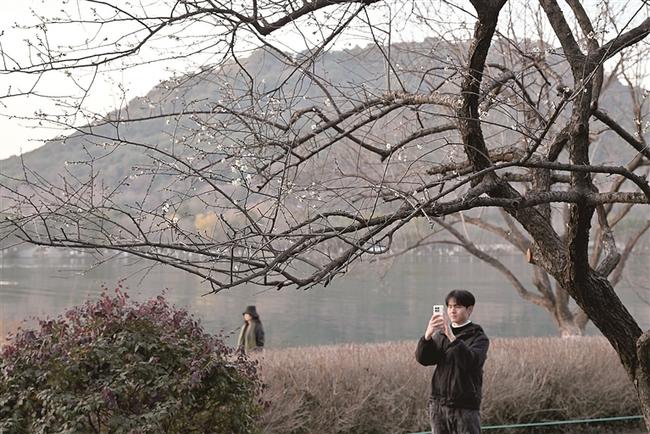 腊月在即,在湘湖越风楼梅林,白梅、红梅悄然吐蕊,暗香浮动。
