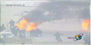 约4分钟后,5名自焚者身上的烈火全部被天安门地区公安民警迅速扑灭。