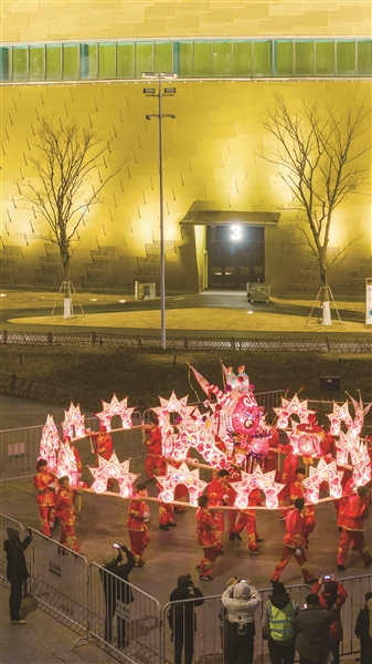 这几天,“走马观花”新春活动正在拱墅运河体育公园火热举行。活动将持续至2月10日,现场,非遗演出、互动打卡、新春主题歌会、年味市集等应有尽有,为市民游客奉上一场充满传统韵味与新春喜悦的文化盛宴。图为昨晚来自东阳的30米非遗板凳龙在运河体育公园进行巡游演出。