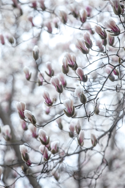 杭州最常见、种植数量也最多的是白玉兰,纯白色或者花朵底下带着紫色条纹,盛放时美得冰清玉洁,硕大又洁白的花瓣看得人心生欢喜;还有一种二乔玉兰,是白玉兰和紫玉兰的杂交品种。花瓣外头是紫色,里头是白色;紫玉兰,紫红色一片,开花很晚,要拖到近4月初才肯露面。它也不像其他玉兰高高壮壮,属于落叶灌木,植株很小,矮矮的。