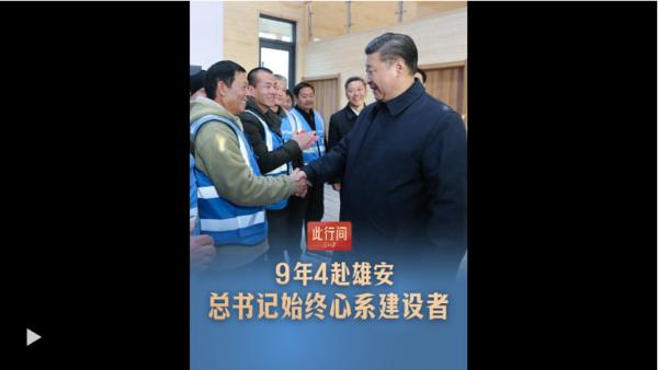 人民日报客户端讯 今年是雄安新区设立9周年。9年4赴雄安,习近平总书记始终关心着这座“未来之城”的建设者。人民城市人民建,人民城市为人民。党中央始终心系雄安的发展。跟随总书记的足迹,致敬雄安新区的建设者,看“千年大计”的不凡起笔