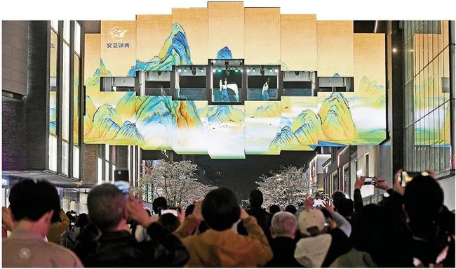 4月1日晚,位于湖滨步行街区的西子廊桥·“文艺赋美”盲盒音乐会踏春上新,来杭公演的舞蹈诗剧《只此青绿》精华片段抢“鲜”登场,吸引众多市民游客驻足观赏。据悉,4月2日、3日晚,西子廊桥还分别上演《童谣寻声》和《骏马驰骋》专场。